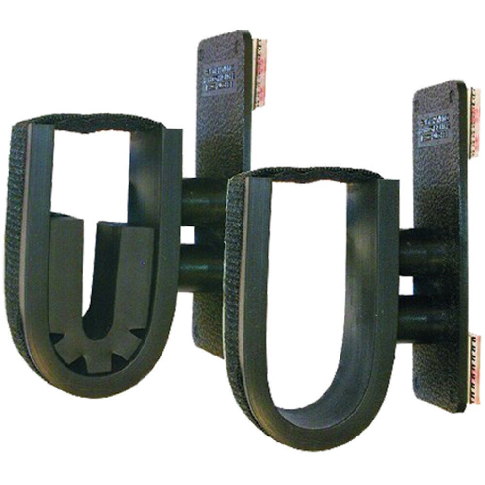 Rugged Gear Single Hook Gun Rack w/Dual Locks - Clear 3M dual lock strip adheres to interior or exterior glass, metal, painted surface, vinyl, or plastic. The rack snaps into the strip, and 250 mushrooms per inch positively lock into place for holding power. Not affected by heat, cold, moisture or terrain. Strong and continuous holding removable mount eliminates need for screws or bolts or permanently altering your vehicle. Adjustable, neoprene covered aluminum hooks bend easily to fit any item; straps tighten to prevent movement and wear. Removable radius reducer included to hold gun barrels and small radius items.