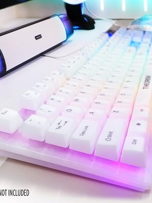 The PC keyboard comes with hybrid silicone membrane switches which means they look like mechanical keys and have the resistance for typing to feel like a mechanical switch. Tactile feel of the switch gives confidence in knowing keystrokes are being registered. The LED keyboard's raised keys are fully suspended unlike other standard low-profile keyboards which makes for quite the gaming experience. The quiet typing will be preferred if indeed you have other housemates and need to be quiet as the day turns into night. This 104 key full size keyboard is the perfect addition to any PC gaming setup!