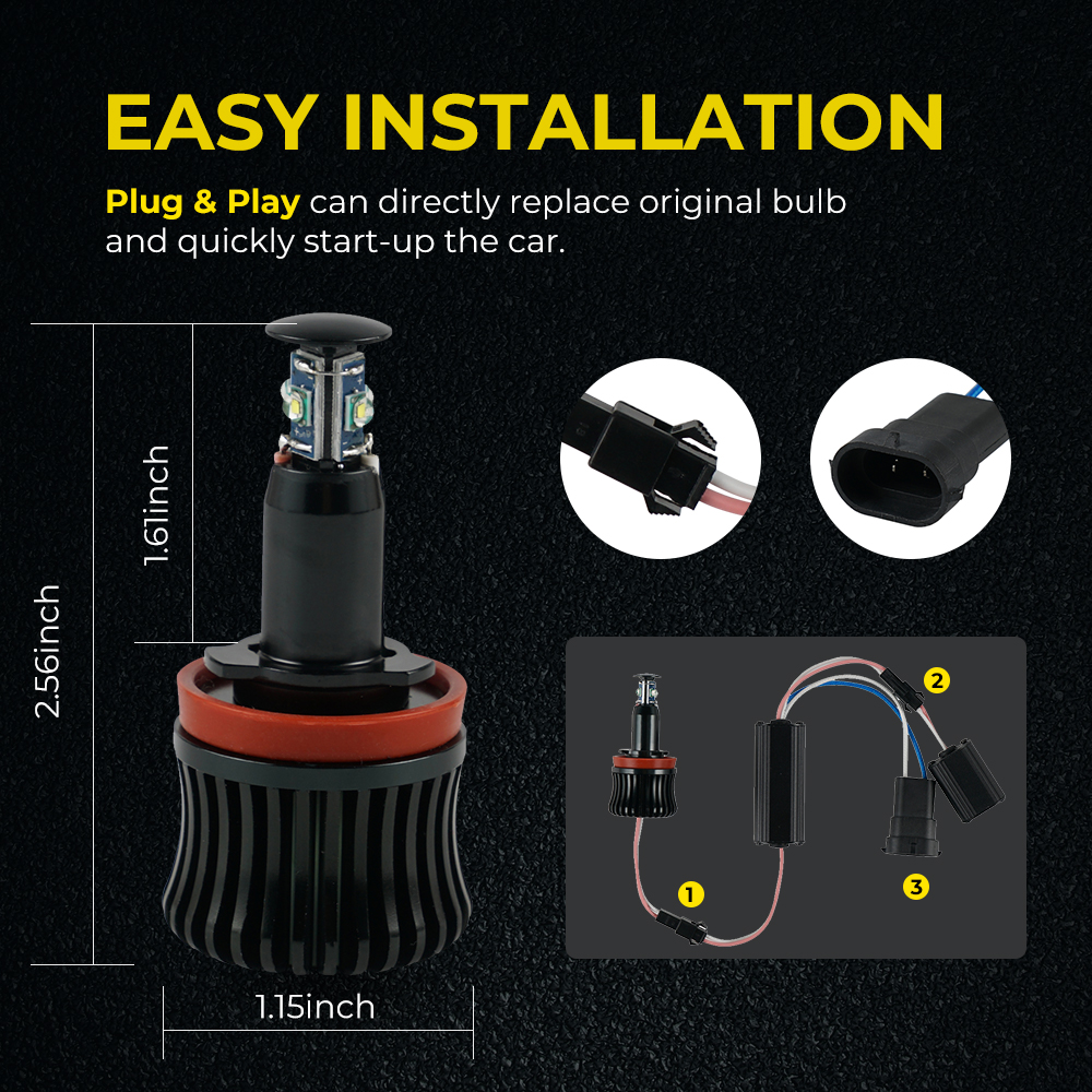 ---Specially designed for BMW with Errors code canbus; OBC Error Free; No computer reprogramming needed. ---Plug & play, fit direct into your bulb holder with no modification required. ---Better than original bulbs, it has longer life; faster light up; durable for use. ---Over heat proteciton for more stable peroformance and safer driving. ---Original OEM Part Numbers: 003584ZIZ01A Fitment(For) Fits the following BMWs: 2007-2010 E60/E61 Fits BMW LCI vehicles with Xenon Headlights 2009-2012 E90/E91 Fits BMW LCI vehicles with Xenon Headlights and all M3's 2007-2010 E92/E93 Fits BMW Pre-LCI models with Xenon Headlights and all M3's 2007-2013 E70 Fits BMW with Xenon Headlights 2008-2014 E71 Fits BMW with Xenon Headlights 2007-2013 E82/E88 Fits BMW with Xenon Headlights 2009-2016 E89 Fits BMW Z4 with Xenon Headlights 2008-2010 E63/E64 Fits BMW LCI vehicles with Xenon Headlights 2013-2015 E84 Fits BMW with Xenon Headlights Product Description Condition: Brand new Type: Angle Eye LED Light Material: Aluminum Voltage: 12V Current: 0.9A Lumen: 800LM /bulb Light Color: White Lifespan: 50000hrs above Operating Temperature: -20°C~ +100°C Package Included 2Pcs Marker Angel Eye LED Lights Note 1.Professional installation is highly recommended. 2.Please verify that the Bulbs fit your vehicle before you purchase 3.Due to light and screen difference, the item's color may be slightly different from the pictures. 4.If you are not sure which angel eyes you need, please contact with us or tell us your detailed car model or give us the photo of your original car lamps. After we confirm with you, you make order. FAQ Q1: Will the bulbs suitable for my vehicle? 1. If you are not sure about your bulb model, please check the ebay fitment as the instruction above. 2. Check the owner's manual, or better yet, physically inspecting the bulb in the vehicle beforehand. 3. Contact us with your vehicle make/model/year via eBay message to ensure you get everything you need for your kit! Q2: What if I encounter a dashboard error message or flickering? A: All the Bevinsee LED headlight bulbs are designed with plug and play, and CANBUS ready. While there are a few sensitive vehicles might occur an error or flickers. The warning Canceller solves this problem. Q3: Neither side lighting up? Both sides flicker, flash, or work inconsistantly. Pls kindly Check the headlight fuses, and then check the ballast plugs to insure correct installation. If this doesn't work, your car may need a relay or resistor. Q4: How to get the best light output? A: When the LED CHIPS are facing left and right(3-9 o'clock) direction and the lamp body stays vertical at 12-6 o'clock direction, you will get the best light output. Please check out the installation video on the product detail page. Q5: What should I do if there is a quality problem? A: Please send ebay message to us, we will solve any problems for you as soon as possible. Q6: The bulbs doesn't fit my vehicle. 1. The bulbs size maybe wrong, pls double check before order. 2. For some socket, such as H1, H3, H7, special bulb holder may be required. Pls send us the photo of your bulbs, bulb socket, and we will check for you. Q7: Warrning about polarity A: Please kindly check the polarity when connecting the plug. If the LED bulb does not light up or work properly after installing, please flip the plug around to reconnect
