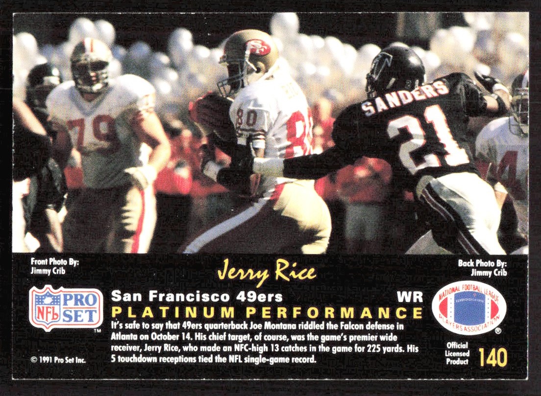 1991 8419D Pro Set PLATINUM Jerry Rice San Francisco 49ers #140