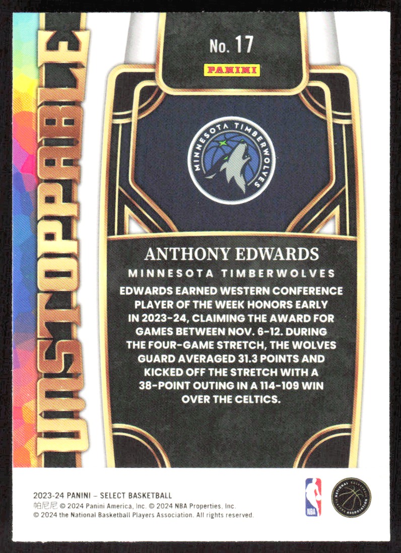 2023-24 9695D Panini SELECT UNSTOPPABLE Anthony Edwards Minnesota Timberwolves