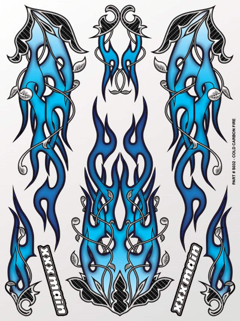 XXX Main Racing stickers add a little bit of sickness to any ride. Printed on clear vinyl and completely fuel proof; these full color stickers are for application on the outside of polycarbonate RC car bodies, making even one-color-wonders look gnarly. Peel-and-stick decals/stickers require trimming with scissors or a hobby knife.
