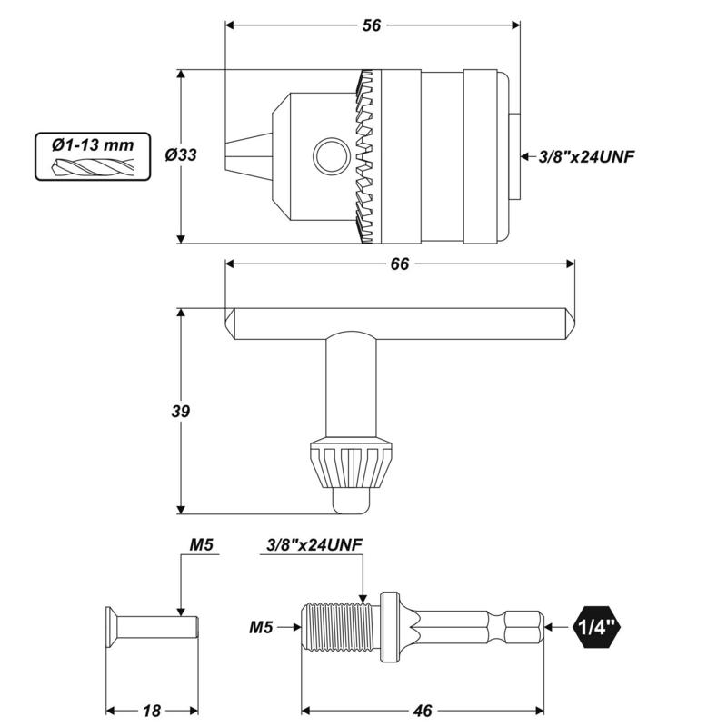 1 x Adapter [HEX 1/4", 3/8" x 24 UNF]