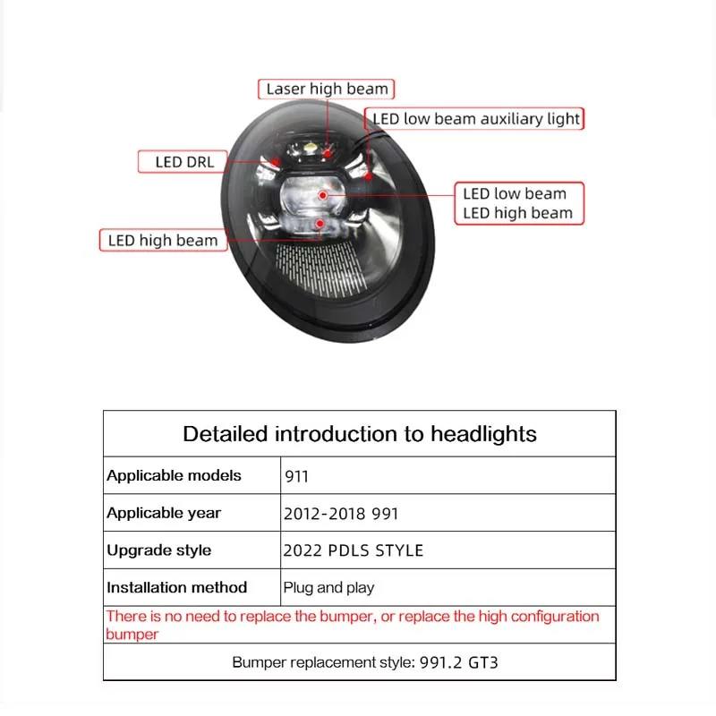 Fits For Porsche 911 2012-2018 ( Professional Installation is Recommended. )
