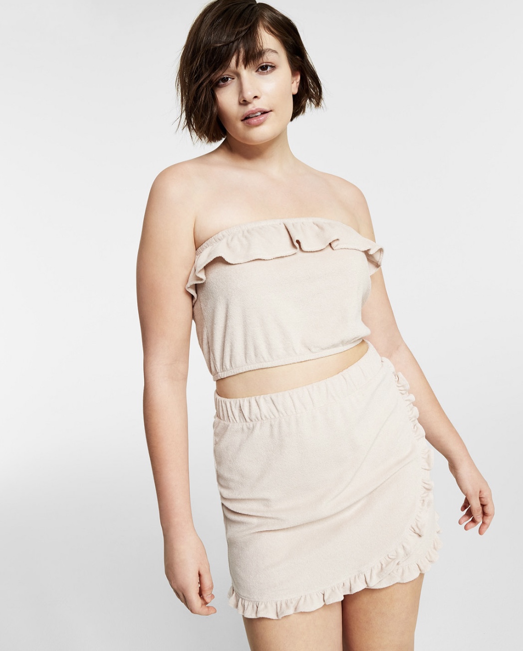 Bar III Women's Terry Ruffled Tube Top Naturally Nude