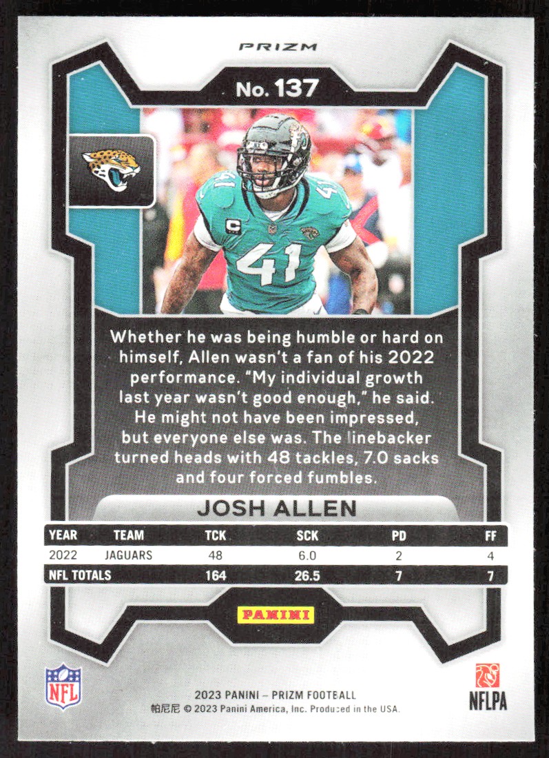 2023 913E Panini Prizm Green PRIZM Josh Allen Jacksonville Jaguars #137