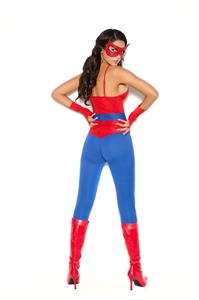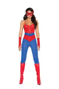 - Description: 5 piece "Spider Super Hero" costume includes a cami top, pants, belt, mask and fingerless gloves.