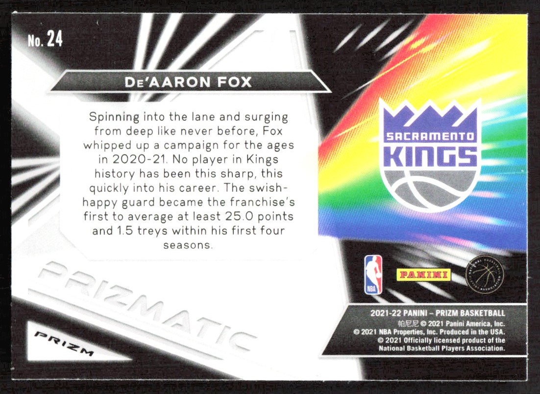 2021-22 1107E Panini Prizm Prizmatic SILVER PRIZM De'Aaron Fox Sacramento Kings