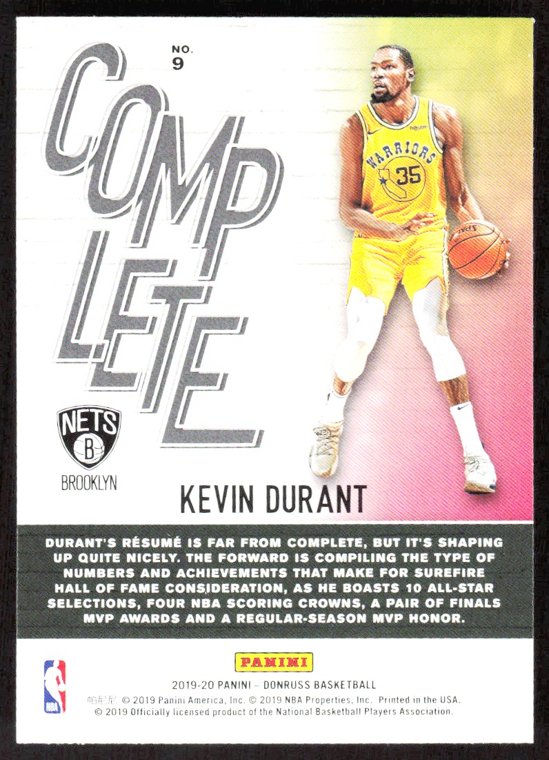 2019-20 2404E Donruss Complete Players Kevin Durant Brooklyn Nets #9