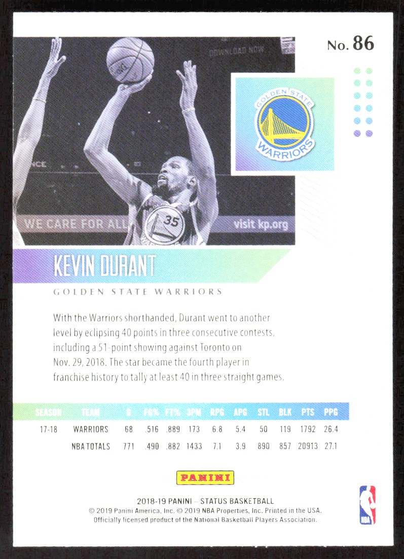 2018-19 2417E Panini Status Kevin Durant Golden State Warriors #86