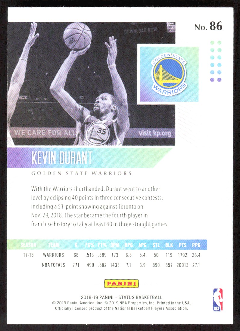 2018-19 2418E Panini Status Kevin Durant Golden State Warriors #86