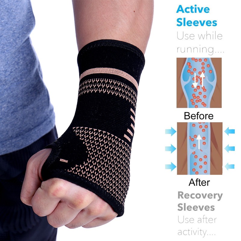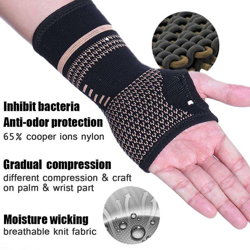 Copper Wrist Hand Support Brace Compression Gloves Carpal Arthritis Sports Gym