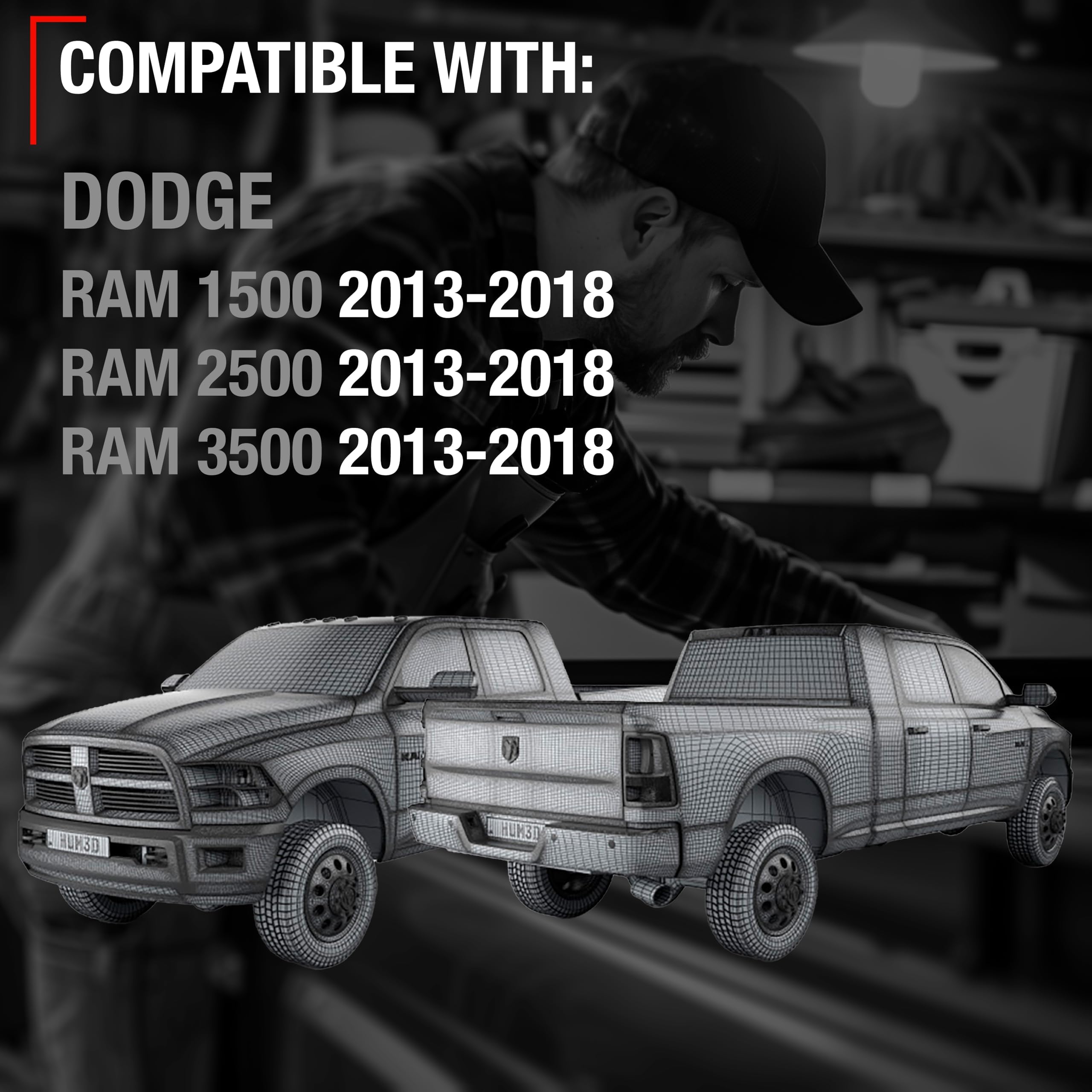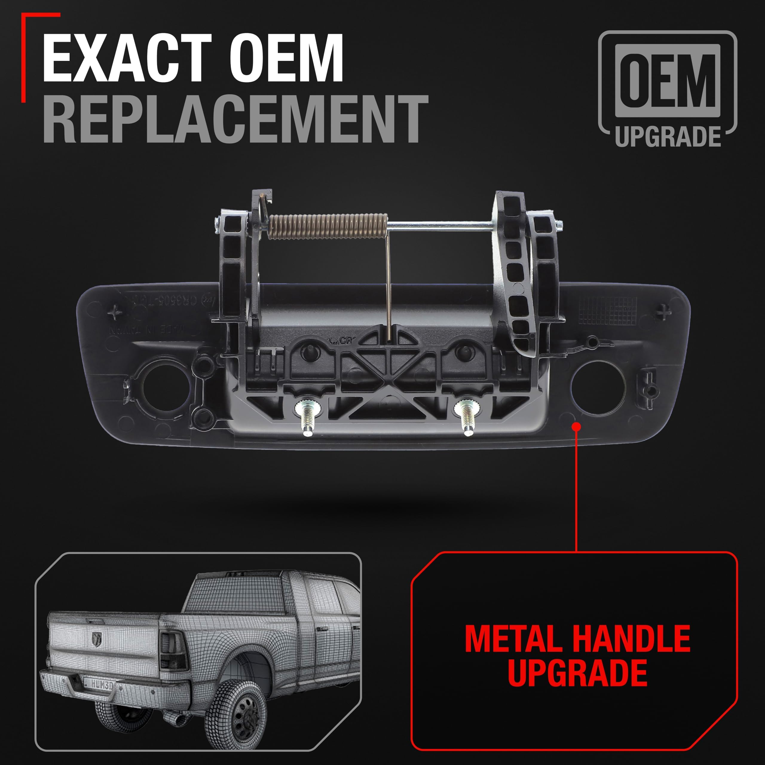 Enhance the functionality and aesthetics of your vehicle with our Tailgate Handle, compatible with 2013-2018 Dodge Ram 1500, 2013-2018 Dodge Ram 2500, 2013-2018 Dodge Ram 3500. This high-quality replacement part is designed to meet or exceed OEM standards with part number 68197873AA-MT, ensuring a perfect fit and easy installation. The inclusion of a keyhole makes this handle an ideal choice for vehicles equipped with a rear view camera system. Our tailgate handle is made from robust metal body with an textured black finish that not only improves the functionality but also enhances the visual appeal of your vehicle. The handle is designed for easy installation, allowing you to quickly replace your existing handle and restore the integrity and security of your vehicle’s tailgate. Supported by a comprehensive 24-month warranty and expert US-based customer service, our product guarantees both quality and reliability.
