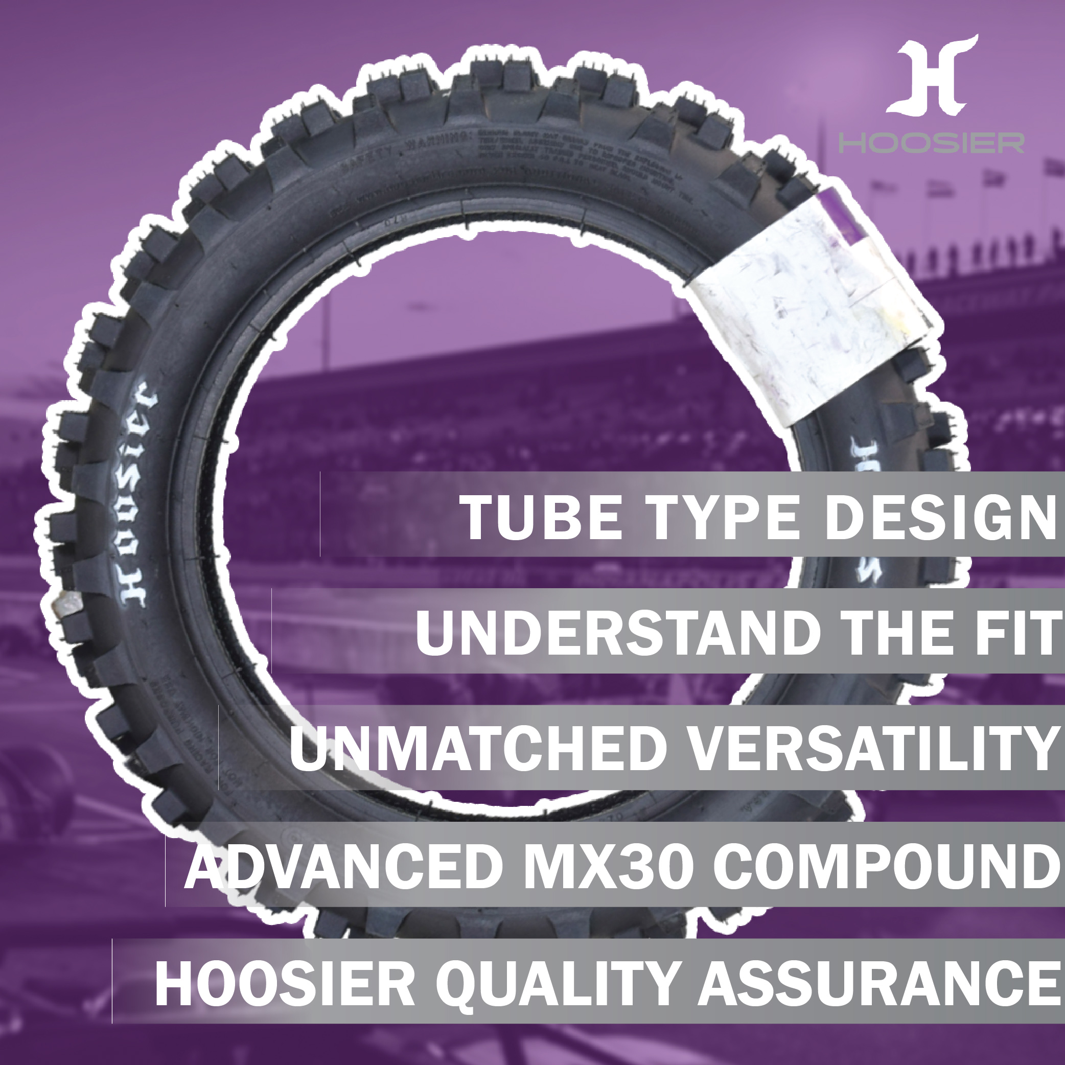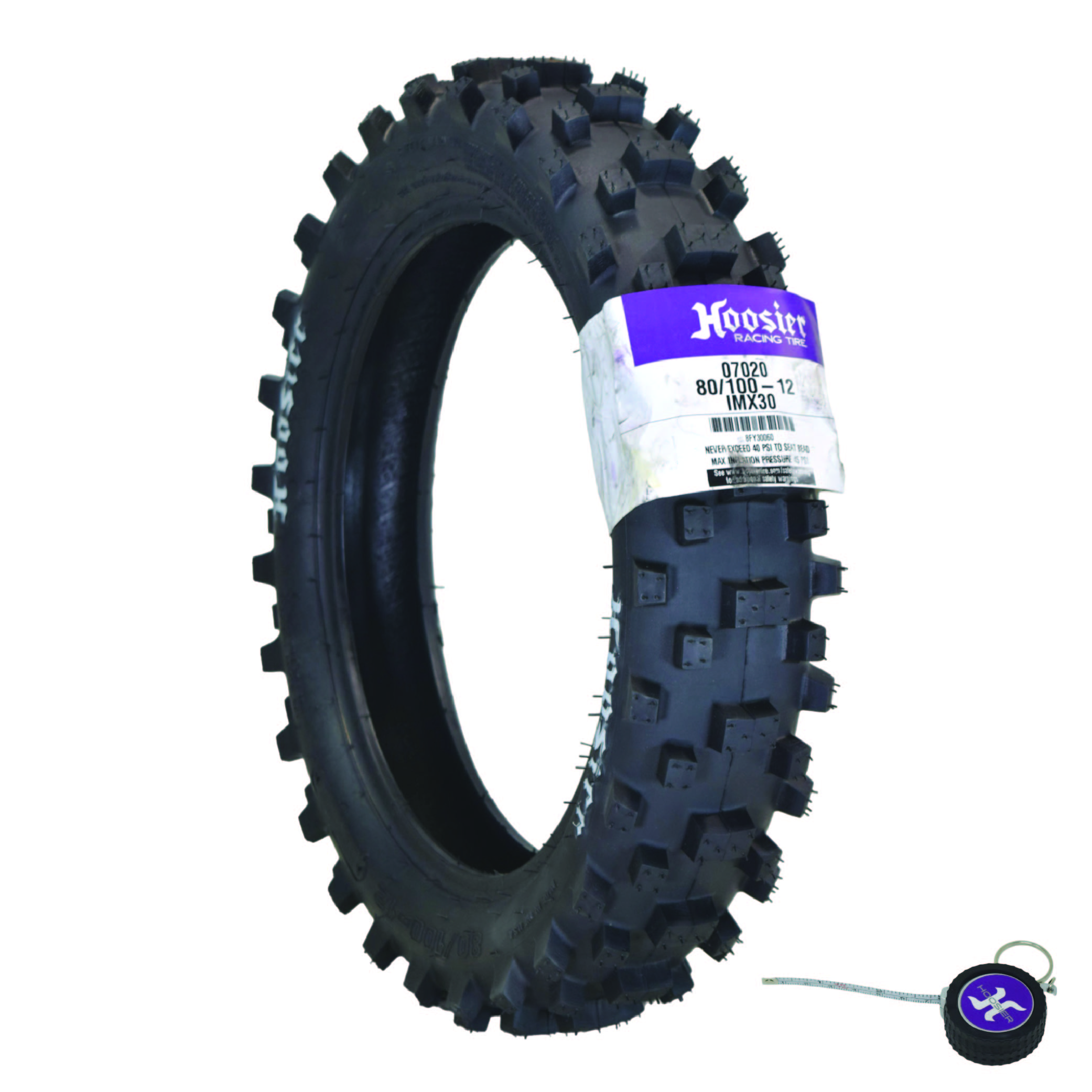 Choose the Hoosier Racing Tire 80/100-12 IMX30 Dirt Bike Rear Tube Type Tire for your rider's 65cc bike and experience the difference in performance, durability, and control. Trust in Hoosier's legacy of excellence and let your racer conquer the track with confidence and speed.