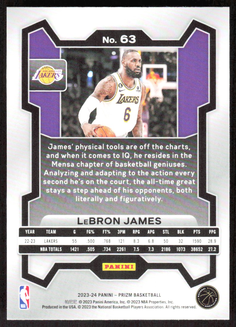 2023-24 2925E Panini Prizm LeBron James Los Angeles Lakers #63