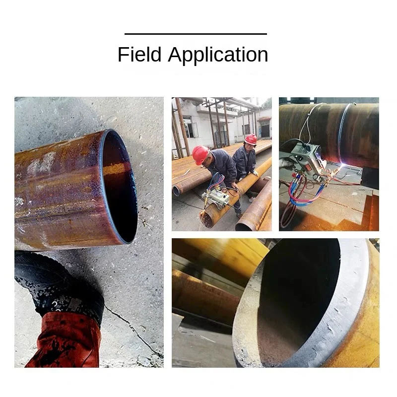 Technical Parameters 1. This product is made of aluminum alloy and has a compact structure. 2. This machine uses permanent magnetic wheels to adsorb on the steel pipe for crawling and cutting, and can cut horizontally, vertically and upwards. 3. This machine has the characteristics of good cutting circle and easy operation. The bevel is i/45°4. It is widely used for cutting steel pipes in petroleum and chemical pipeline projects. 5. Note: If cutting diameter (above 600mm) pipes, an additional steel belt device assembly is required (additional purchase required)