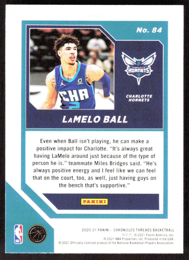 2021-22 3014E PANINI CHRONICLES THREADS LaMelo Ball Rookie Charlotte Hornets #84