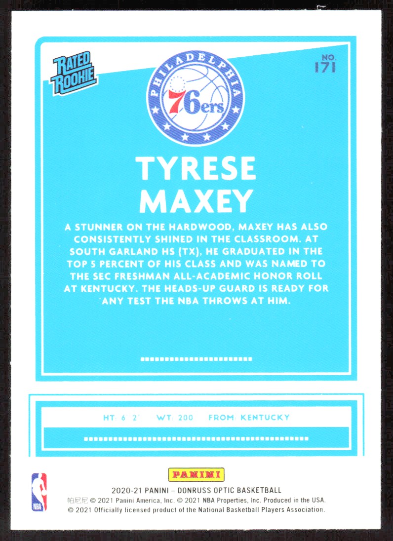 2020-21 3020E Donruss Optic RATED ROOKIE Tyrese Maxey Rookie Philadelphia 76ers
