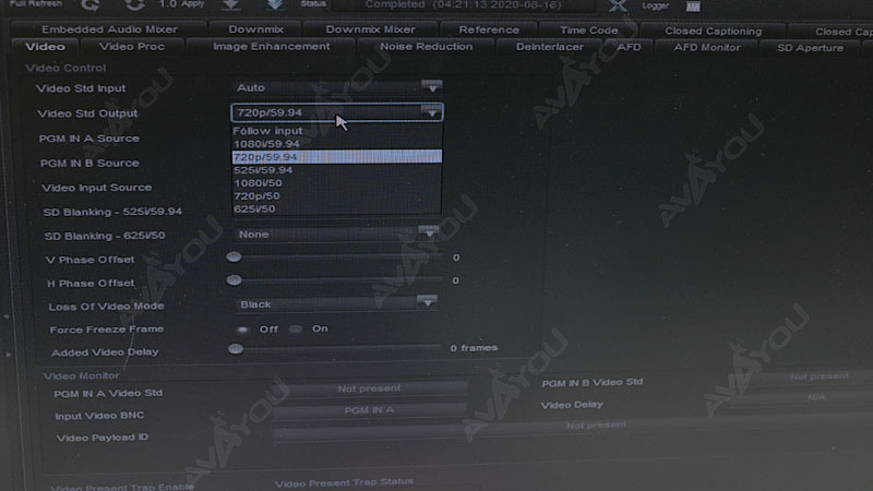 The 7814UDX series supports 16x channels of embedded audio with audio delay automatically matching video delay. Additional audio delay can be applied. Full audio processing is supported with standard proc features including audio channel shuffling, gain, and inversion. 5.1-to-stereo down-mixing (LoRo or LtRt) and mono-mixing. With \"-AES8\" variants, 8x discrete AES inputs and outputs are provided on a per path basis. Advanced audio processing options include stereo to 5.1 upmixing (+UMX2) and IntelliGain audio loudness management (+IG2). Full audio routing capability allows outgoing embedded and discrete AES audio (-AES8 versions) to be sourced from any combination of embedded audio, discrete AES inputs (-AES8 versions) or processed audio.