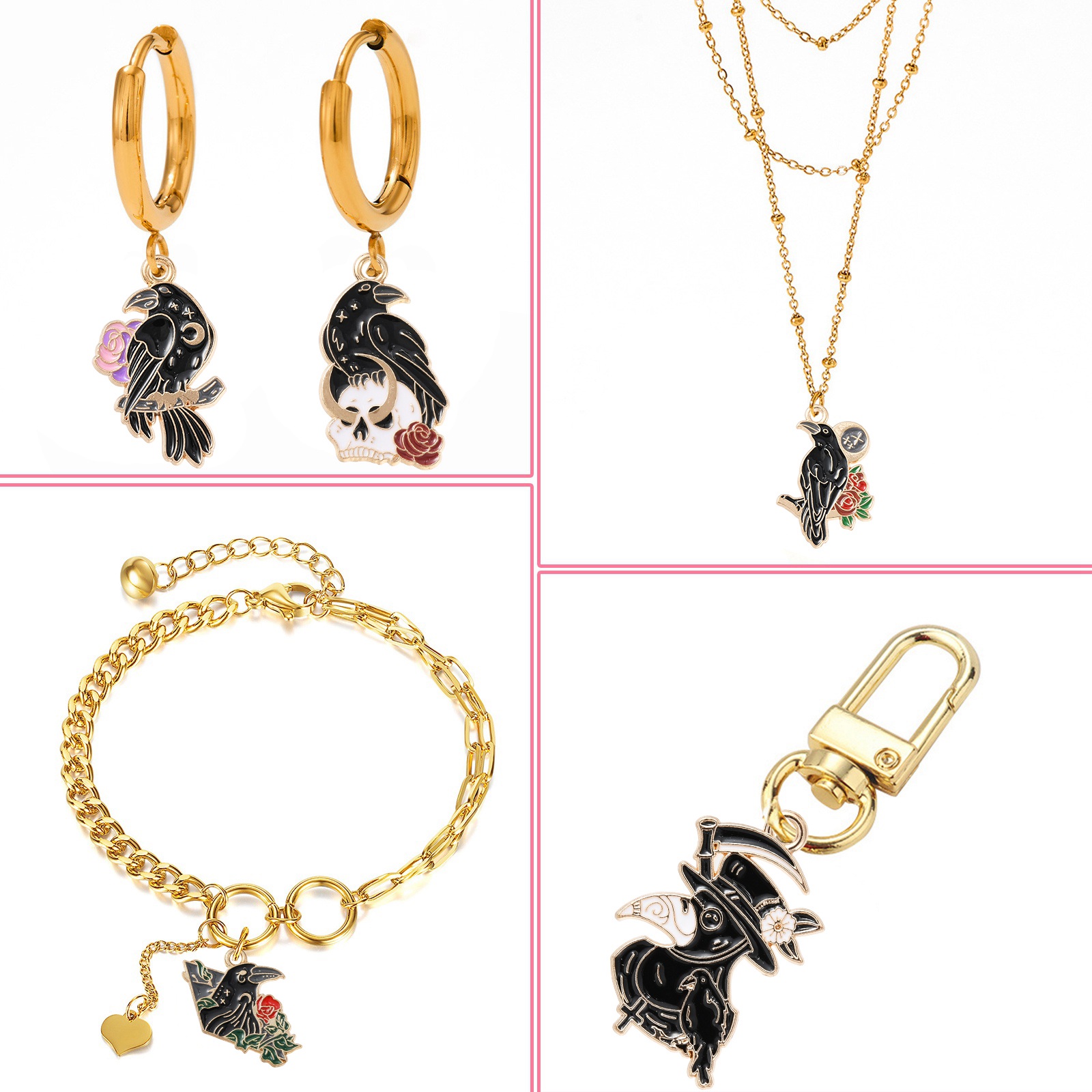 Crow with Rose Flower & Skull: about 27x16x1.5mm, hole: 2mm, 2pcs;