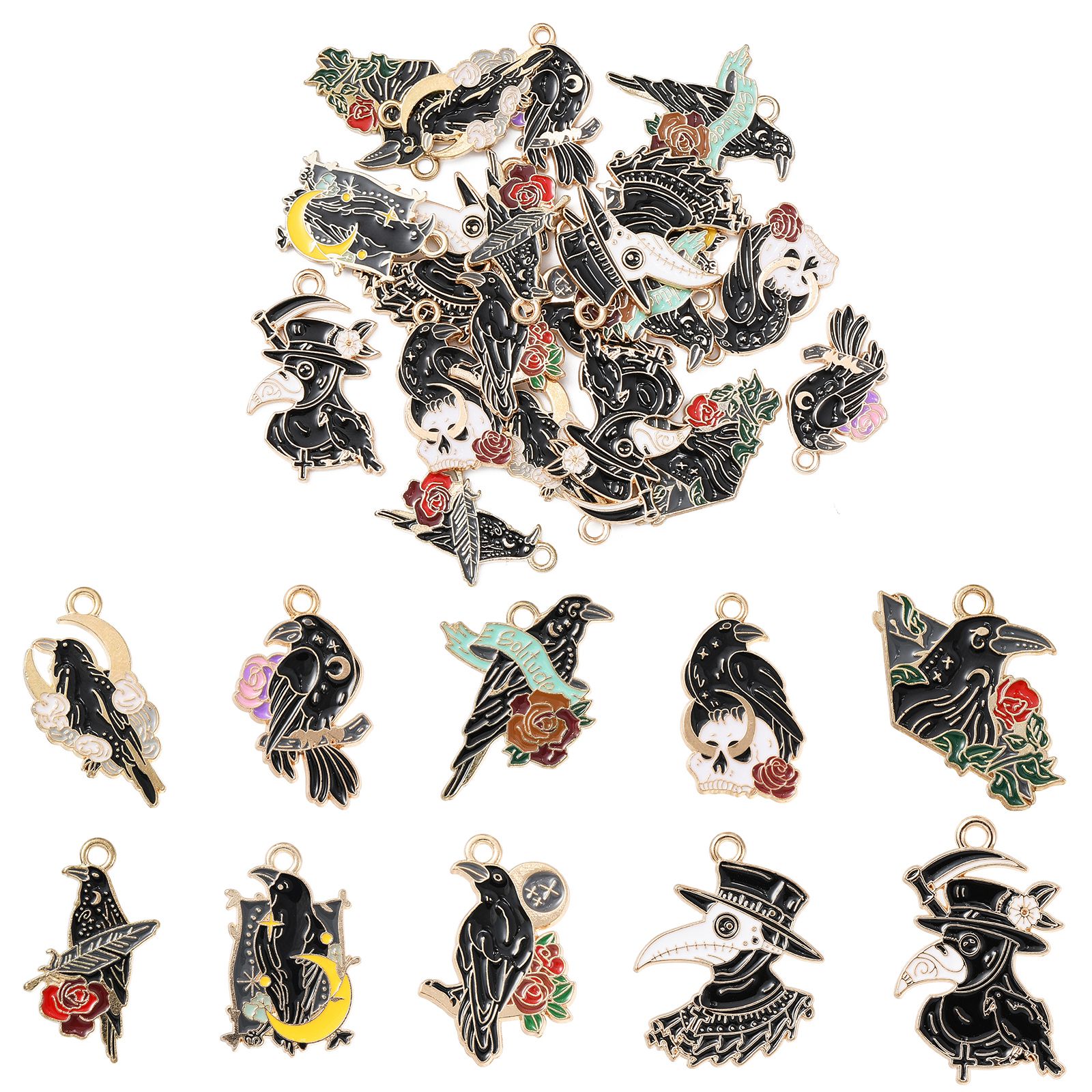 Crow with Rose: about 27x17x1mm, hole: 2mm, 2pcs;