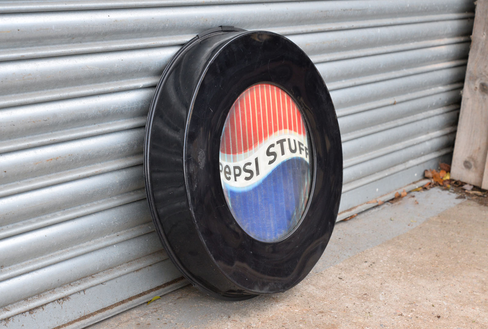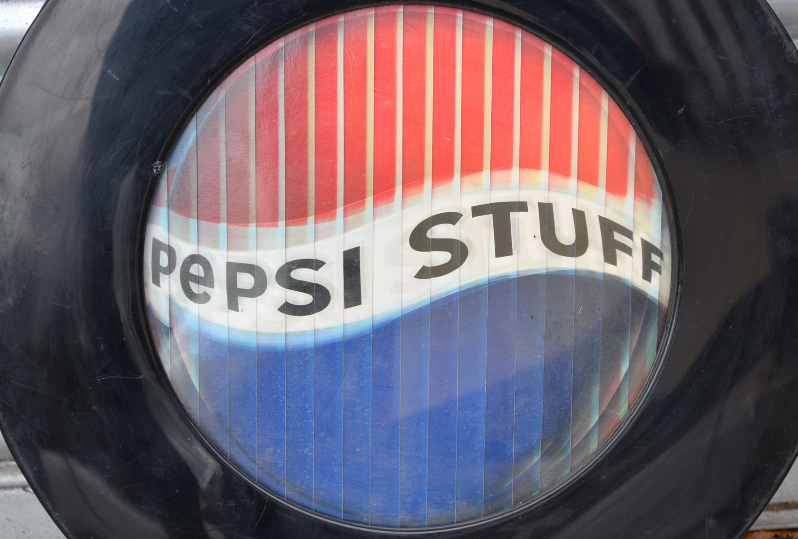 Welcome to my listing for this vintage Pepsi advertising sign. This cool sign is battery operated and displays two logos by means of moving strips from side to side. The circular body of the sign is plastic.
