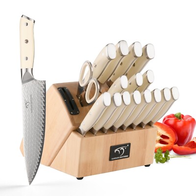 NANFANG BROTHERS Knife Set, 19-Piece Damascus Kitchen Knife Set with Block, ABS Ergonomic Handle for Chef Knife Set, Knife Sharpener and Kitchen Shears, Knife Block Set
