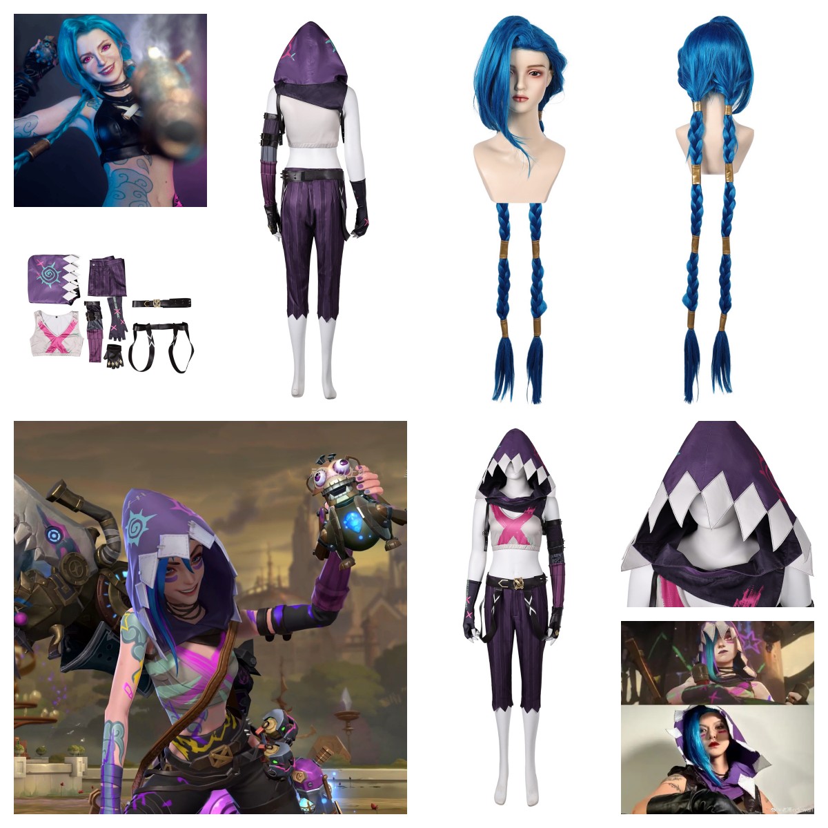 Arcane League of Legends Jinx Cosplay Top Pants Hat Gloves Costume+Wig fullsuit
