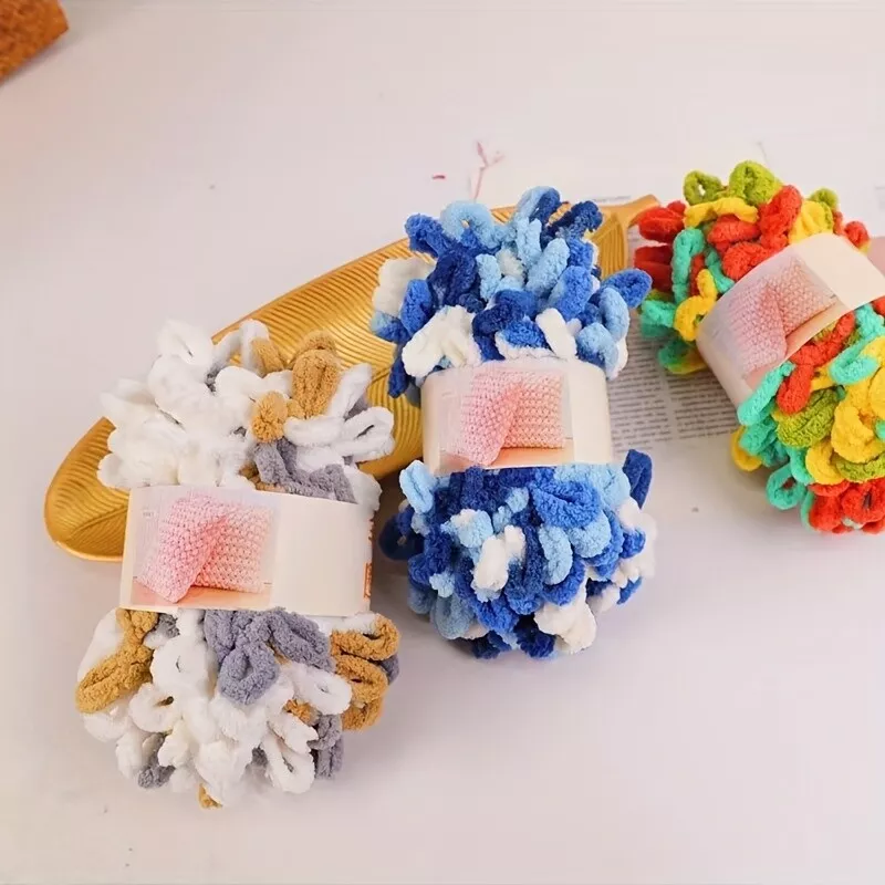 Description: 【Finger Loops Yarn】 Each cake of this fun bulky yarn weighs 3.5 oz. (100 g) and the length is 9 yds / 7 m. 【HAND-KNITTING YARN】No needles are required for this loopy, super-plush jumbo yarn.Simply pull on loop through another and you look like a knitting guru with one ball makimg cowl, and three balls make a baby blanket; Perfect way to get your kids involved in your yarn addiction 【Multiple Use】 Perfect DIY craft or project for cozy knit blankets, cushions, rugs, scarves, hats, and other knitting projects in school or at home! Also can be used for crocheting, weaving, and decoration. 【Craft for all ages】 loop yarn is great for crafters of all ages! Perfect for kids, teens, adults, or seniors to take their crafting skills to the next level.Get unique and fashion arm knitting, big stitch projects or large hand knit items with this super soft bulky puffy blankets chenille yarn 【Easy Care】Conveniently machine washable and dryable. 1.Hand Wash or Machine Wash Cold on Gentle Cycle; 2. Initial water temperature should not exceed 30C or 86F; 3. Tumble Dry Normal/ Low; 4. Dry Flat/ Air Dry 5 Do not Bleach ; Do not Iron; Do not Dry Clean.
