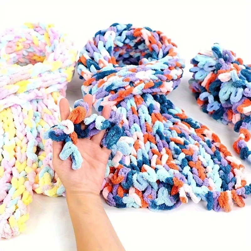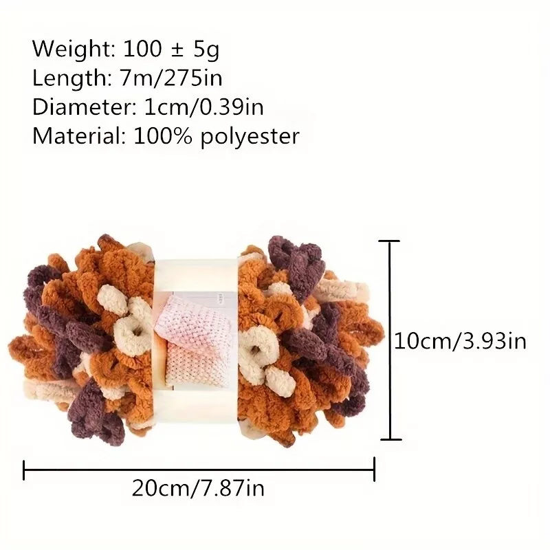 Material: polyester Weight of each roll: about 100 g Convenient to carry: These chunky hand woven fluffy yarns are lightweight and wrapped in rolls, you can easily put them in your handbag, backpack, camping bag, shopping bag and more, enabling you to enjoy finger kitting when you have spare time.