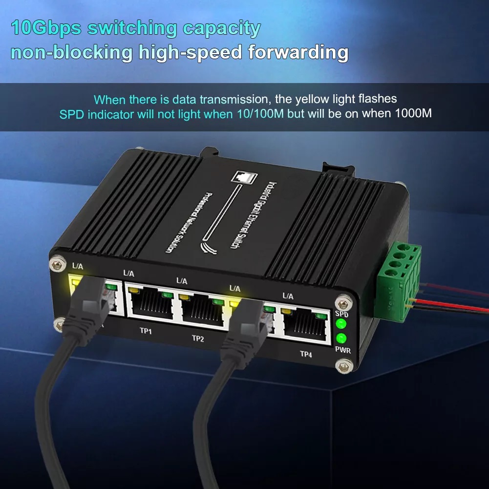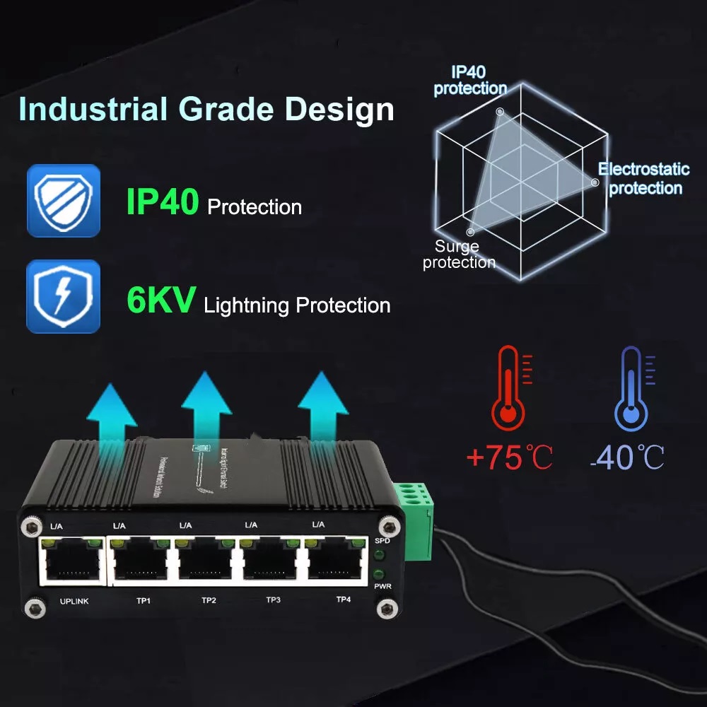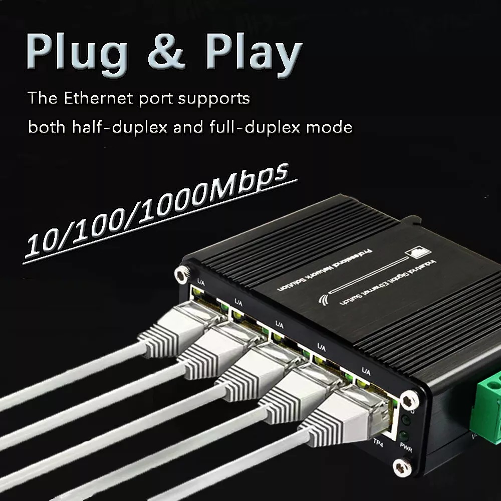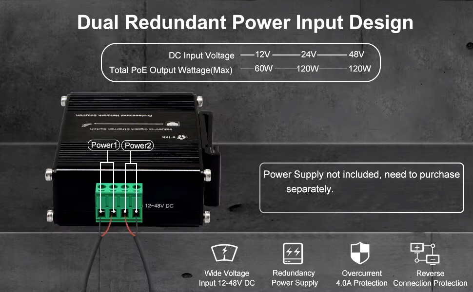 - Wide Input: The Ethernet Switch supports 12~48V DC(Terminal