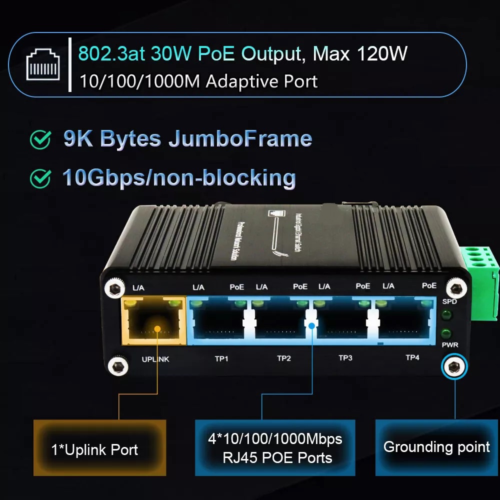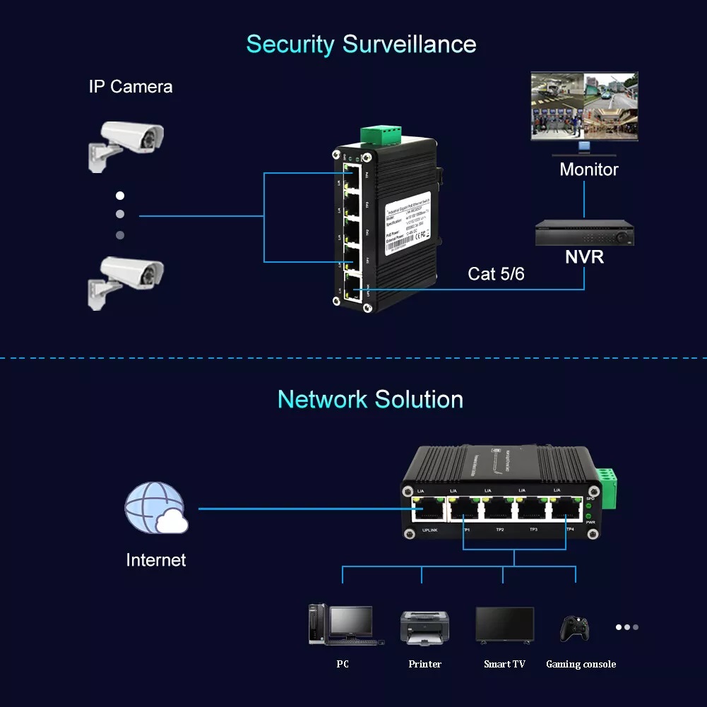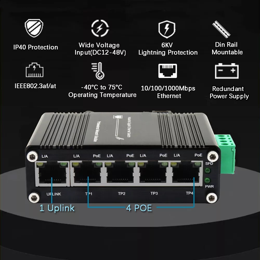 - Wide Input: The Ethernet Switch supports 12~48V DC(Terminal