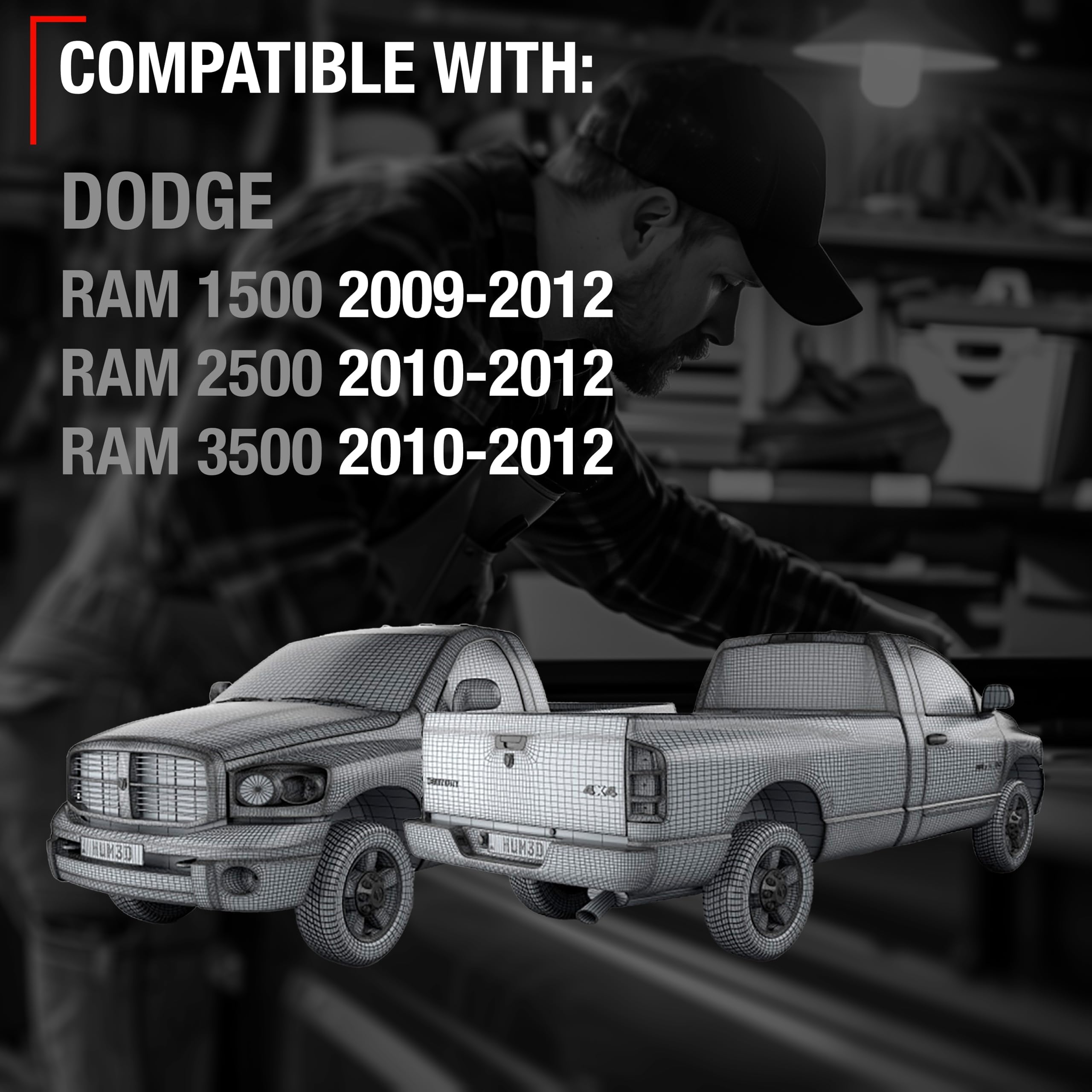 Enhance the functionality and aesthetics of your vehicle with our Tailgate Handle, compatible with 2009-2012 Dodge Ram 1500, 2010-2012 Dodge Ram 2500, 2010-2012 Dodge Ram 3500. This high-quality replacement part is designed to meet or exceed OEM standards with part number 68044906AE, 68044906AD, 68044906AC, 68044906AB, 93511, ensuring a perfect fit and easy installation. The inclusion of a keyhole makes this handle an ideal choice for vehicles equipped with a rear view camera system. Our tailgate handle is made from robust metal body with a textured black finish that not only improves the functionality but also enhances the visual appeal of your vehicle. It includes a keyhole and camera hole ensuring full functionality and safety. The handle is designed for easy installation, allowing you to quickly replace your existing handle and restore the integrity and security of your vehicle’s tailgate. Supported by a comprehensive 24-month warranty and expert US-based customer service, our product guarantees both quality and reliability.