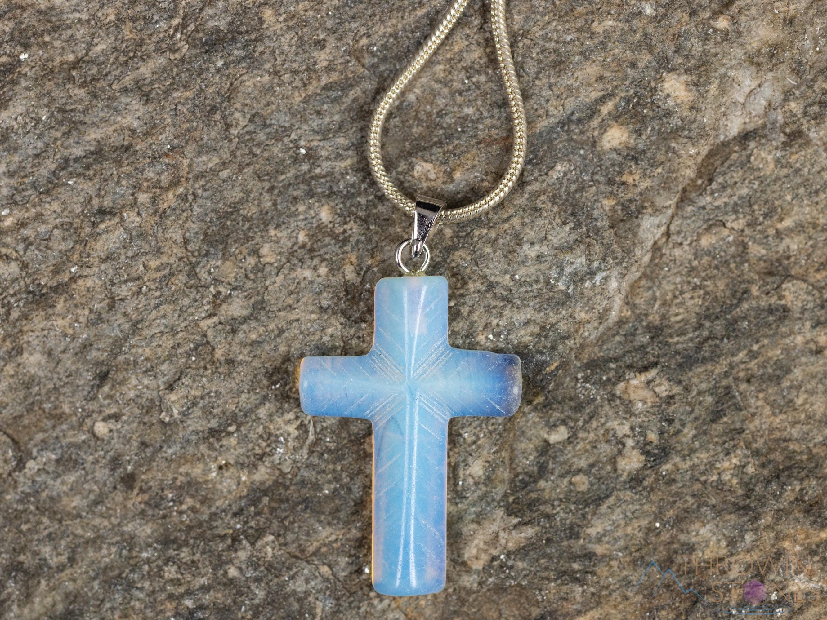 OPALITE Crystal Cross Pendant - Christian Easter Gifts, Gemstone Jewelry, E0751