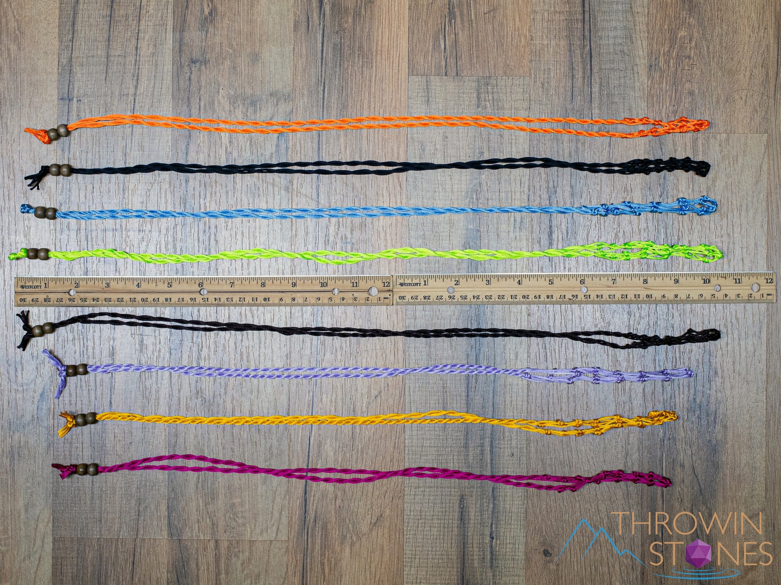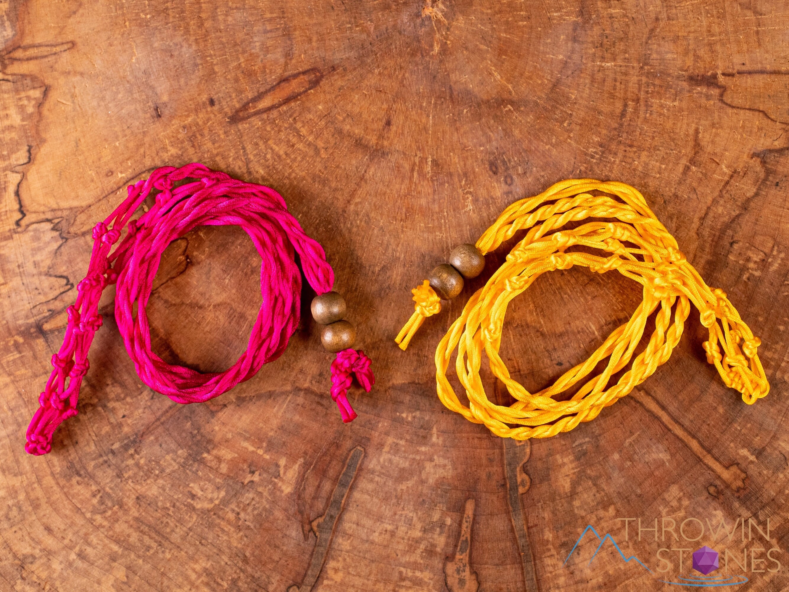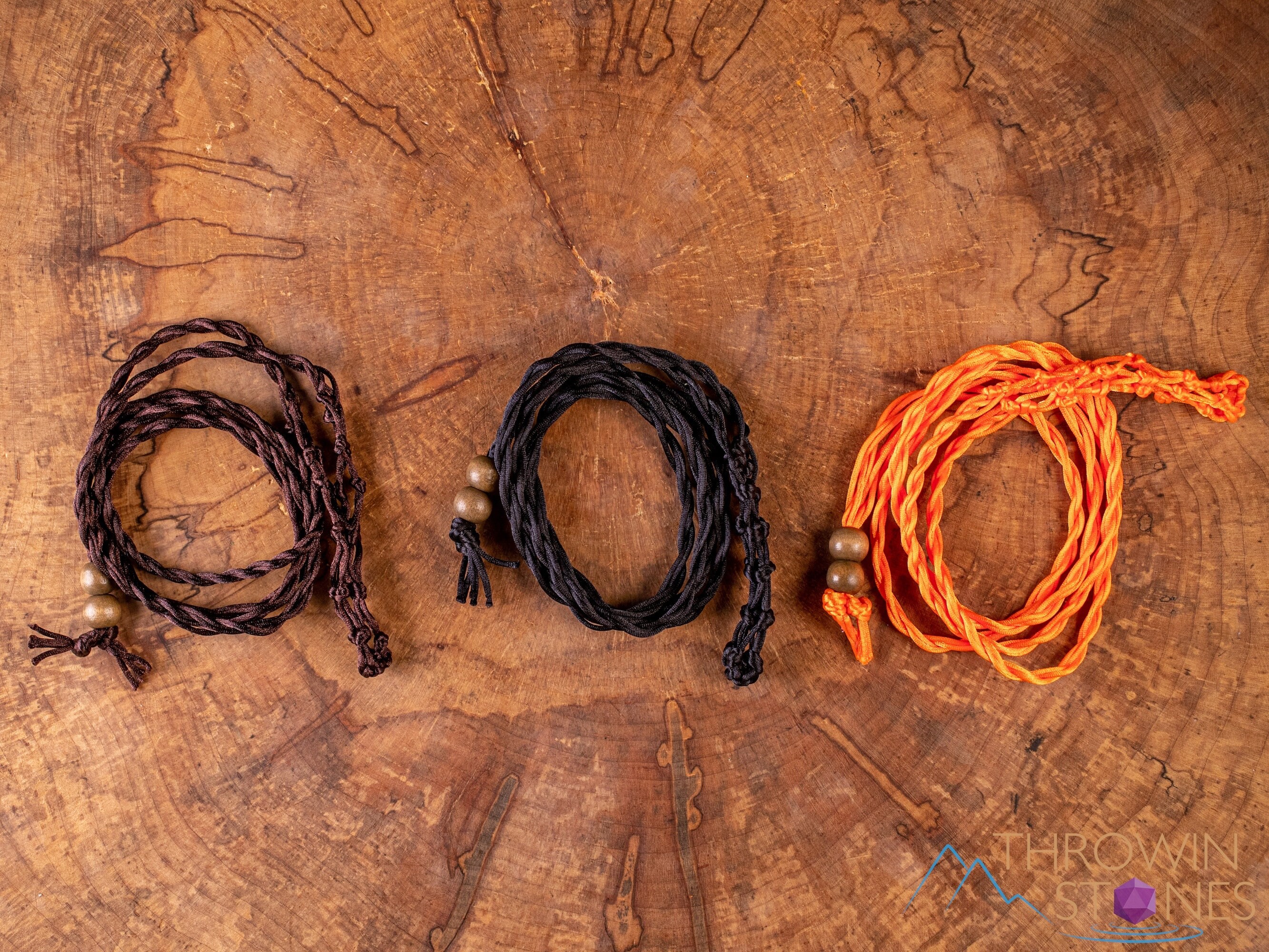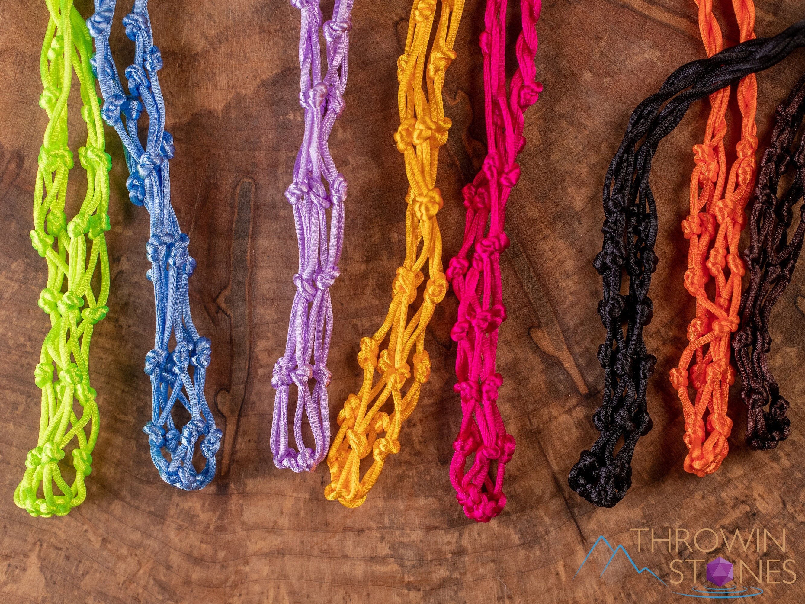 These necklaces are made with nylon cord and wooden beads. STONES ARE NOT INCLUDED.