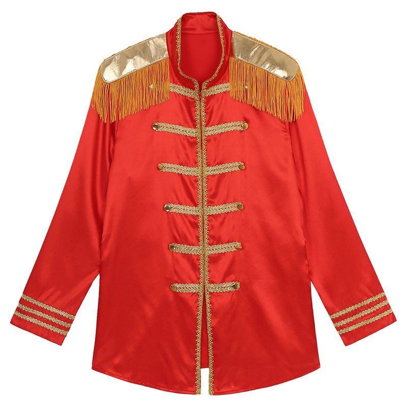 Glänzendes Aussehen, Stehkragen, lange Ärmel, Gummizug Taillenumfang für bessere Passform, Schnallenverzierung.