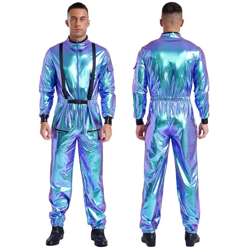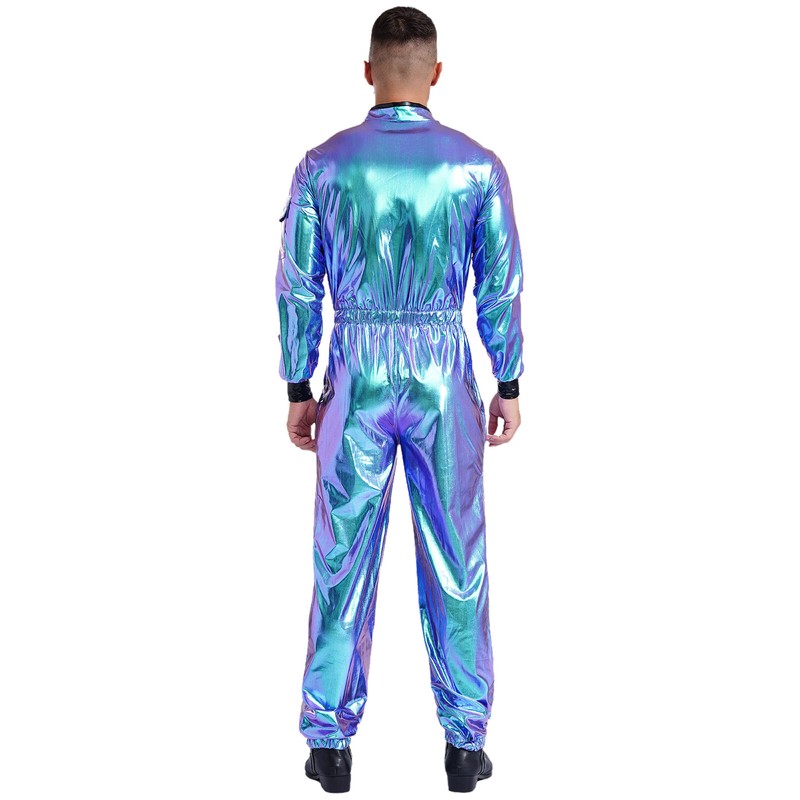 Astronauten-Rollenspiel-Outfit, Halloween-Kostüm, langärmelige Overalls, Reißverschluss-Bodysuit für Herren.