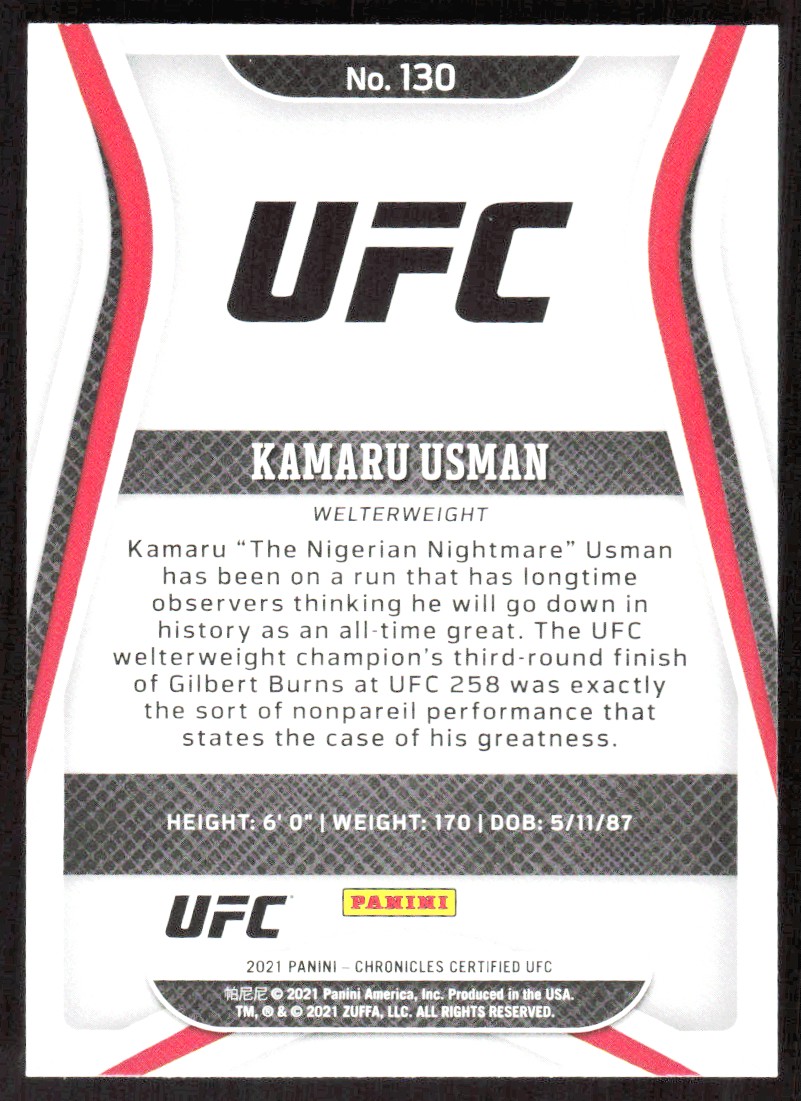 2021 4285E PANINI CHRONICLES CERTIFIED KAMARU USMAN UFC #130