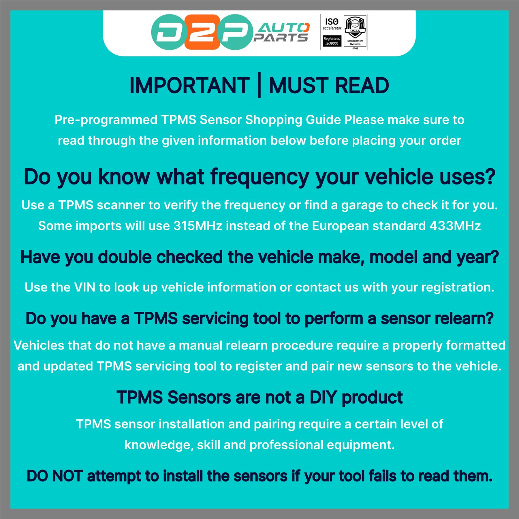 TYRE PRESSURE SENSOR TPMS VALVE SET OF 4 FOR SAAB 9-5 (2009/10-2012/12)