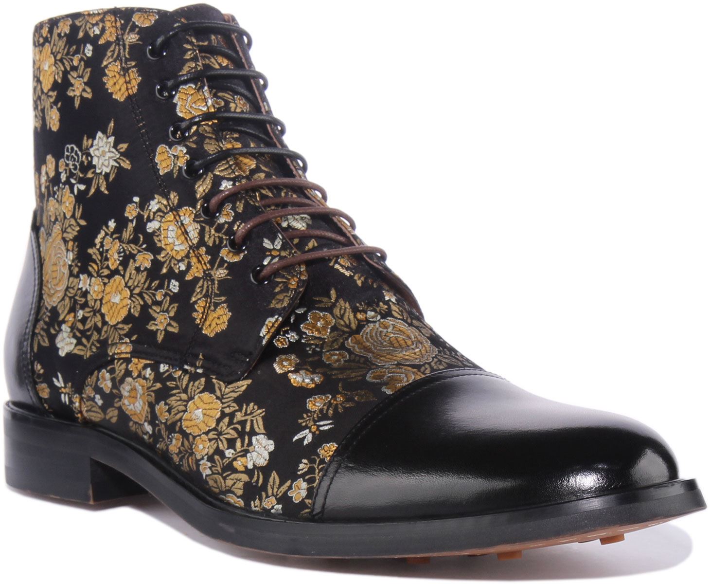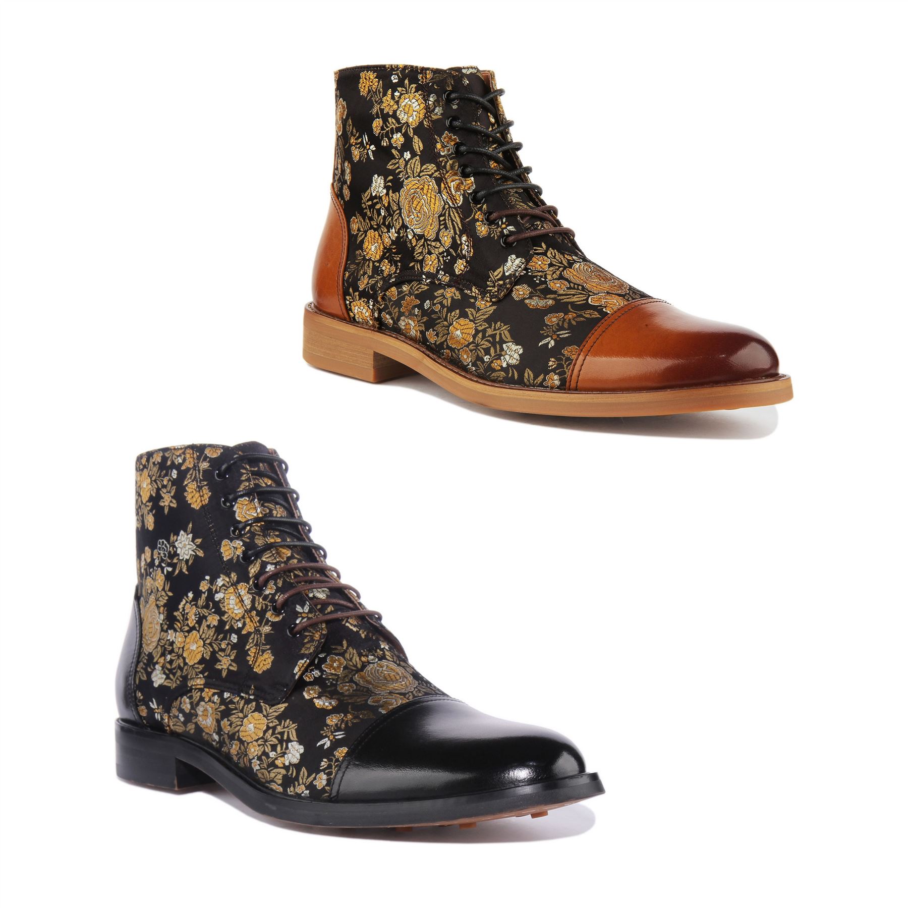 JUSTINREESS England Adam Floral Men's Lace Up Floral Print Leather Ankle Boots