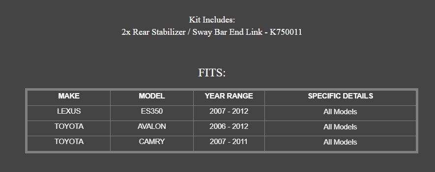 Fitment: MOOG number(K750011),or OE number:K750011