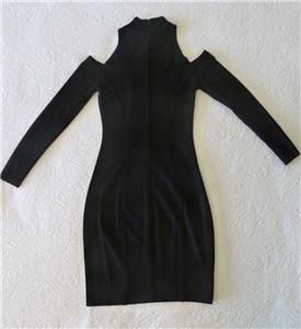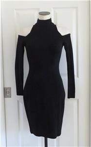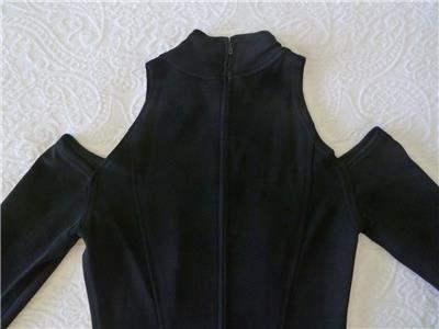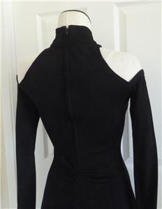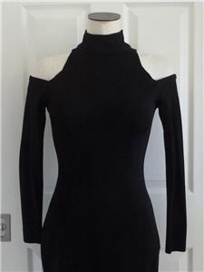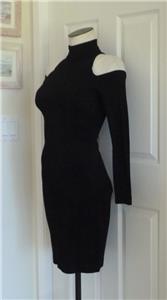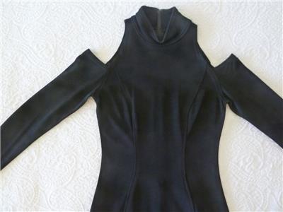 Rare vintage 80s Tadashi dress, timeless sexy style. Tag size Small, has stretch, please check measurements provided below. Smooth figure-flattering knit is 82% rayon, 10% nylon, 8% lycra (spandex). Cold-shoulder sleeves, high neck, hourglass seams in front and back, long back zipper. Excellent condition in every way. Best to review all 15 photos to fully appreciate.