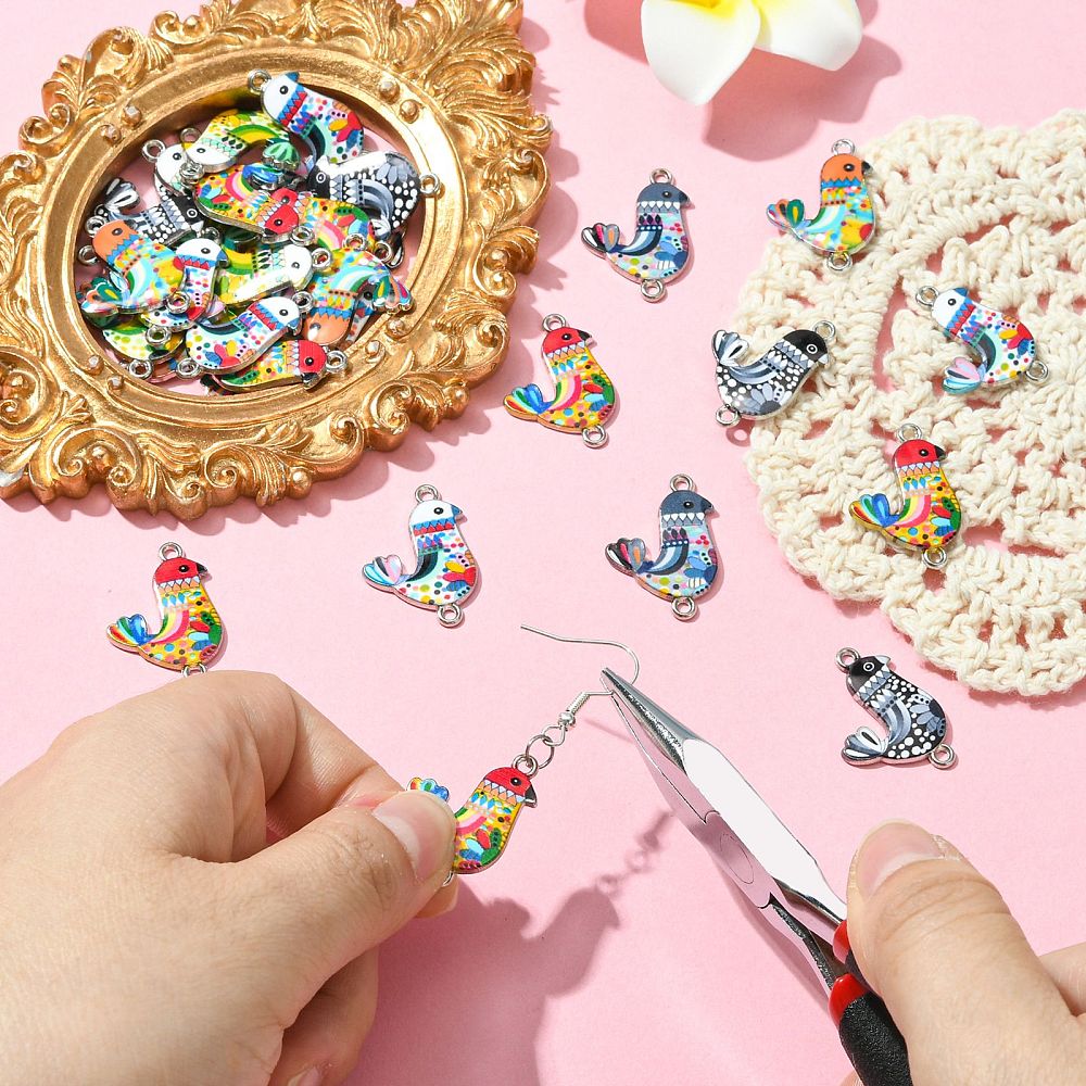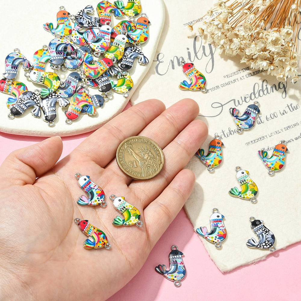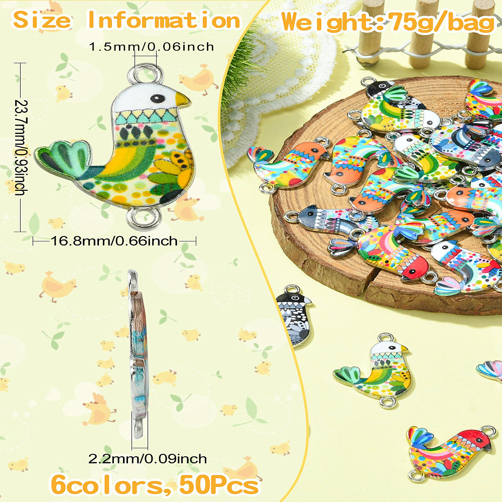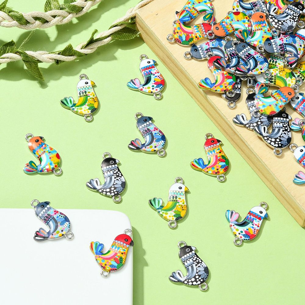 50Pcs 6 Colors Printed Alloy Connector Charms, Bird Links, Platinum, Mixed Color