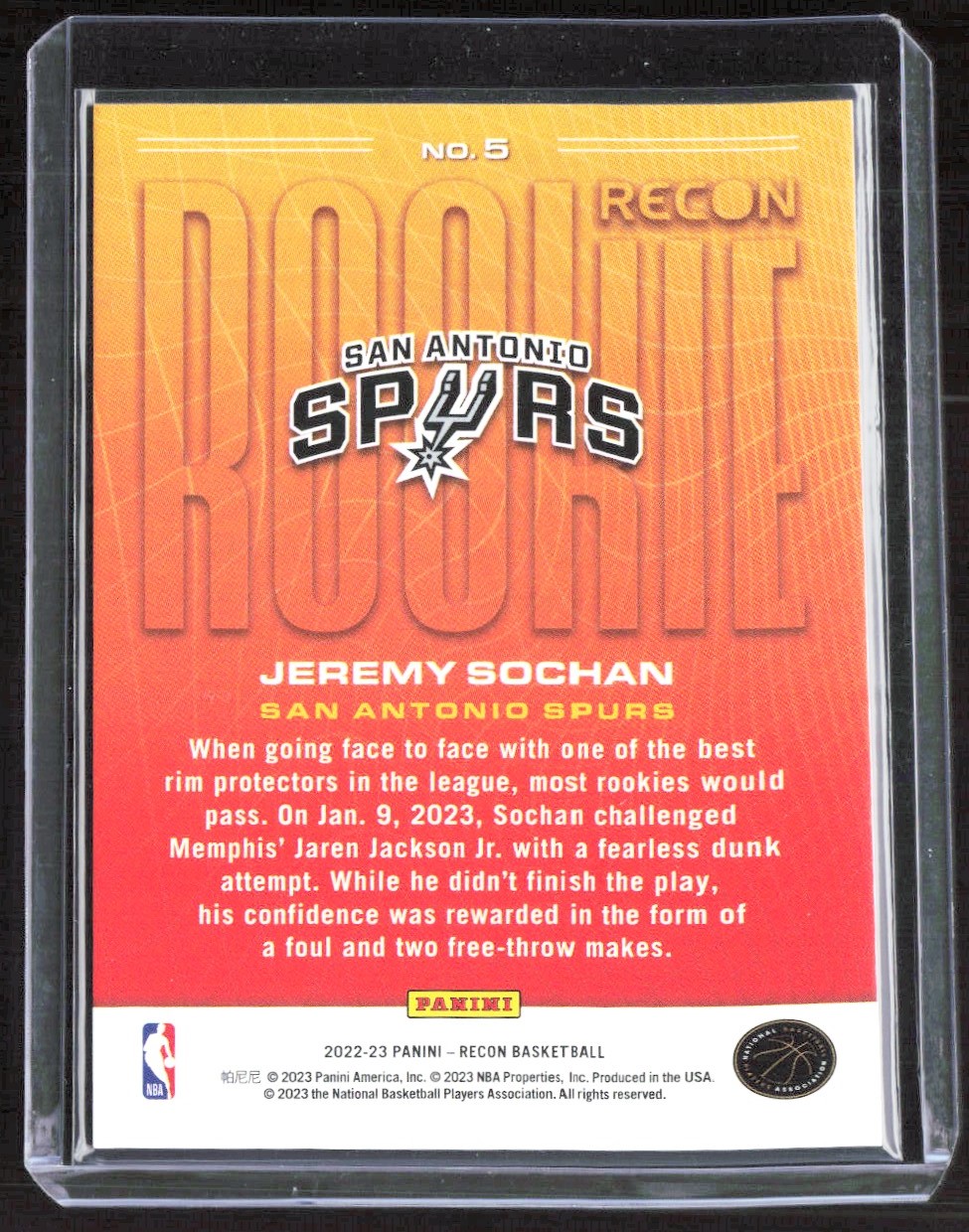 2023-24 4929E PANINI RECON ROOKIE JEREMY SOCHAN San Antonio Spurs #5
