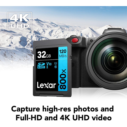 Designed for your point-and-shoot cameras, mid-range DSLR, HD camcorder, Lexar High-Performance 800x SDHC/SDXC UHS-I Cards BLUE Series let you quickly capture, and transfer high-quality photos of stunning 1080p Full-HD and 4K UHD video, with read speeds of up to 120MB/s .