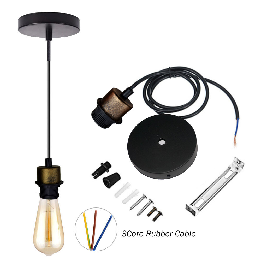 Vintage Ceiling Rose E27 Pendant Light PVC Flex Lamp Holder Fitting Light Kit