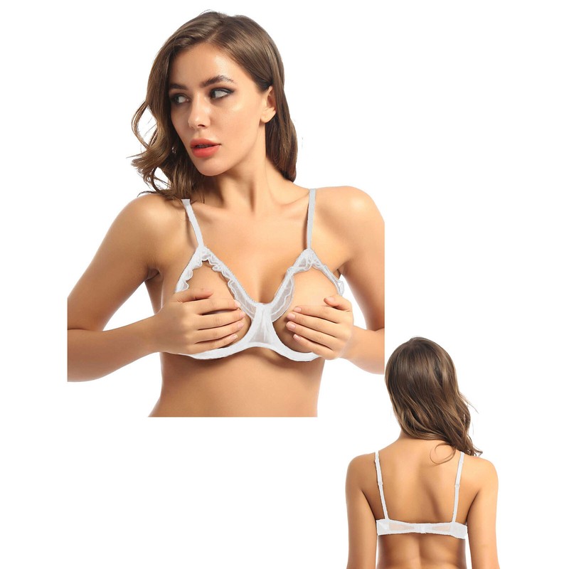 US Women Open Cup Bra Erotic See-Through Sheer Lingerie Spaghetti Straps Bra Top