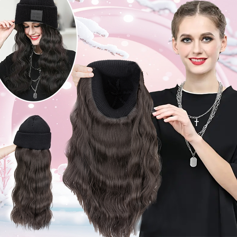 [Warm and Comfortable] The Knit beanie hat wig is special for cool day use, keeps your head warm, and at the same time makes you more beautiful. wig hat attached to hair is so warm and suitable for winter wear and provides a comfortable feeling on your hair for all-day wear. The knit beanie hat wig is stretchable, one size fits most people.