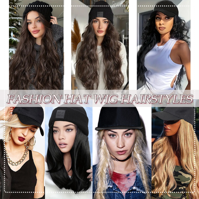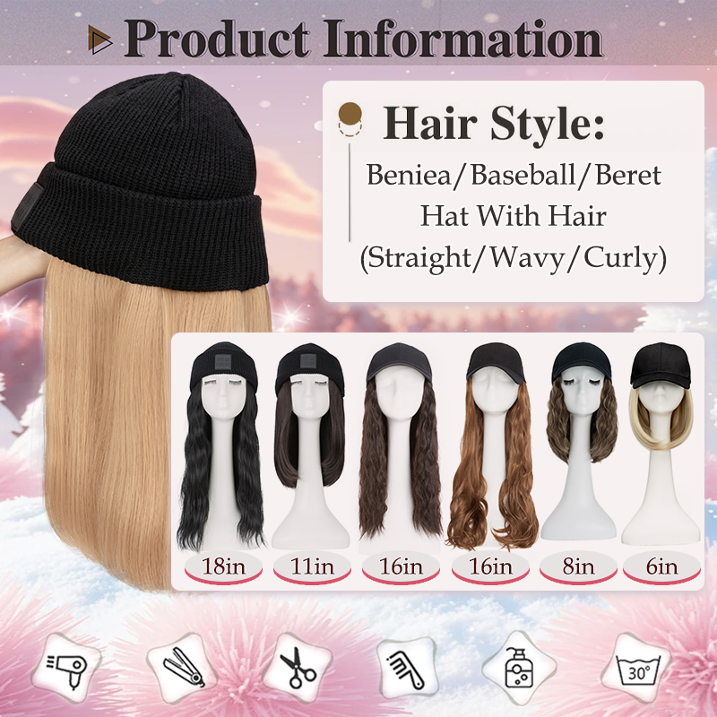[Specification and Material] Hat wig is made of high-quality synthetic fibers. The hairpiece is soft and looks real. And it's got the perfect amount of wave and Straight. The Knit beanie hat is super soft and comfy and the baseball cap is made of polyester, which is comfortable and durable.
