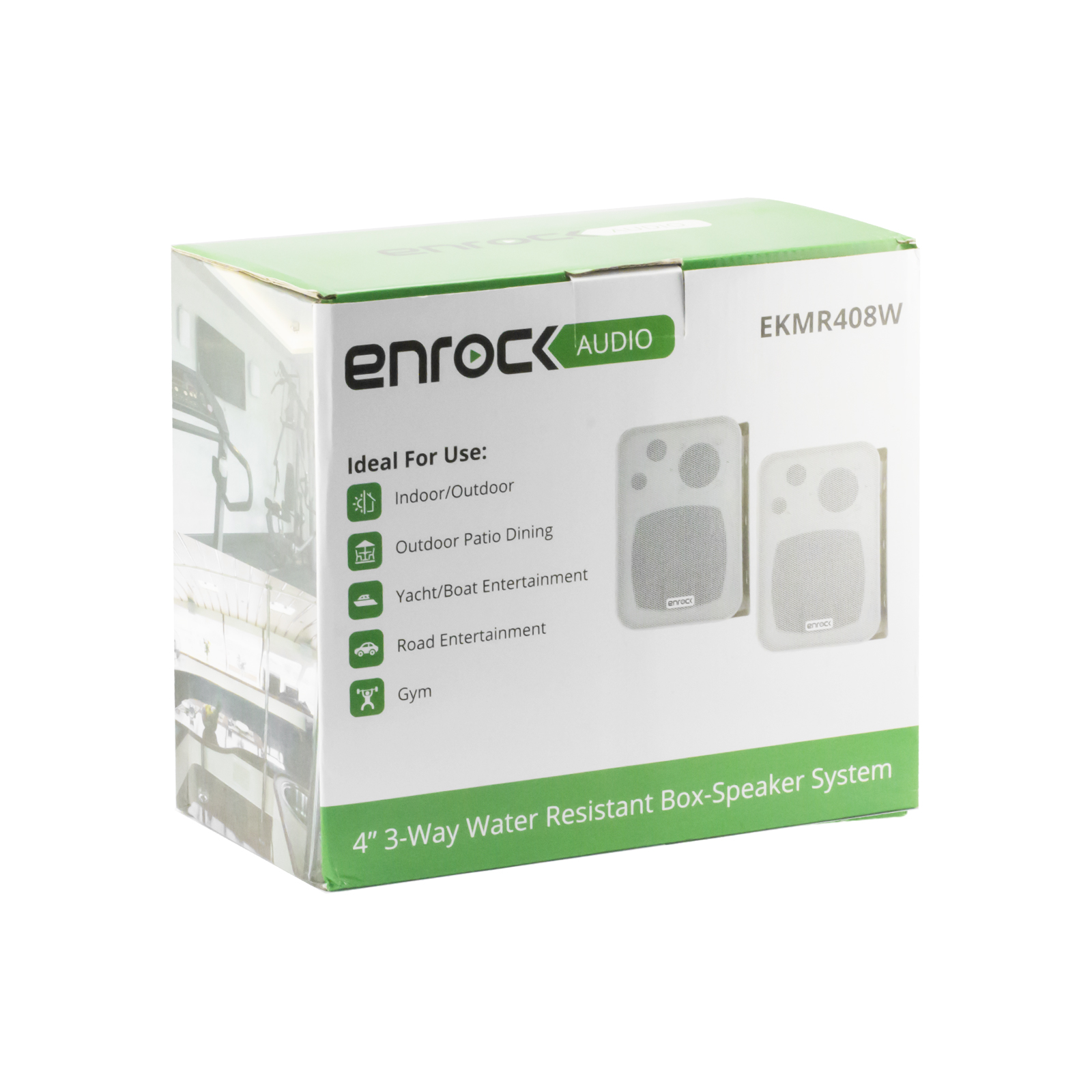 Pair EKMR408W Enrock 30 Watt Max Power 4" Box Marine Water-Resistant Indoor/Outdoor Speaker System (White)